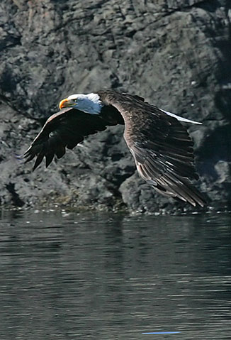 Tuesday, May 18th: Today we had a great inner-island cruise. The whales were on the west side of San Juan and heading north, so Captain Matt took us through the middle to the northwest to insure an Orca sighting. We were lucky enough to catch them between Henry and Stuart Island. J Pod was grouped up and resting and we got some good looks at the entire group. They were heading north into the Canadian Gulf Islands, but it turns out they turned around and headed south. We were fortunate to have a very unique sighting of a Bald Eagle fishing off Crane Island.