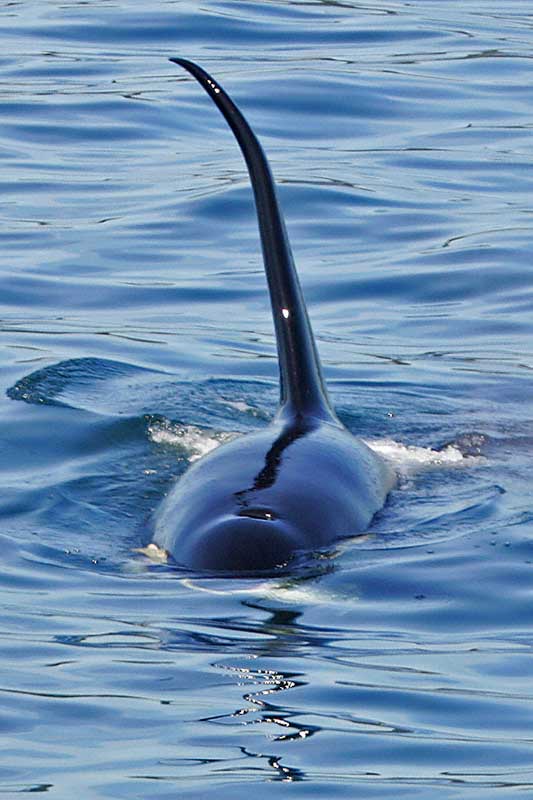 Tuesday, June 8th: Easy duty today! This morning we received a report of Whales southbound at Point Roberts and, with these big tides, they normally come right past Anacortes. We caught up with them in the Straits of Georgia just north of Lummi Island. It was J Pod in calm water with very few other boats. Our captain also reported seeing Salmon swimming just below the water's surface. Most likely these fish were the start of the Summer Sockeye Salmon run. The Whales were foraging and looked very happy today. We also had a great island tour and saw lots of other wildlife along the way. The weather was perfect and we are looking forward to another great trip tomorrow! If anyone is watching from the shore, the Whales will pass by Washington Park in Anacortes this evening at approximately 6 p.m., proving once again the Whales are not always in front of Lime Kiln Lighthouse at 2:00 p.m. like the San Juan Chamber of Commerce suggests.