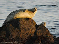 April 29th: Kudos to our hearty guests on our whale watch tours today! It was rainy and a bit lumpy at times - the Island Explorer II searched the big water and the Island Whaler searched through the inner islands but the whales were elusive today. We did see Sea Lions, Seals, Porpoises, American Bald Eagles, and lots of other birds - of course, with our guarantee, all of our guests can come again for free, for life, until we show you whales! Lots of birds out today! The peregrine falcon was in its nest today. We saw lots of harbor porpoises around James Island along with some curious seals. A mated pair of bald eagles sat on the rocks off Blakely posing for the camera. Then we also caught sight of a Steller Sea Lion out fishing near Bird Rocks It's always a nice treat to see Stellers. Ellen Fortado, Naturalist.